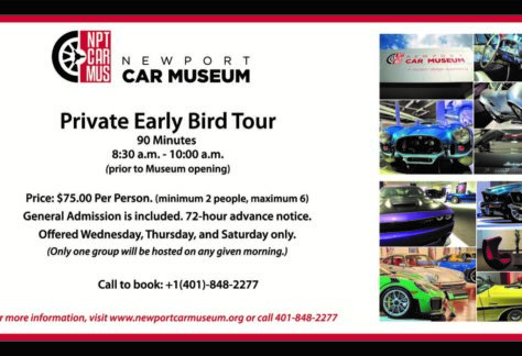 The private collection of 100+ automobiles at the Newport Car Museum focuses on eight decades of modern industrial automotive design and celebrates cars as works of art. From the 1950s to the present, separate galleries for Ford/Shelby Cars, Corvettes, World Cars, Porsches, Fin Cars, Muscle Cars and Mopars have been carefully curated to appeal to men as well as women and to all generations, from grandparents to parents to children.